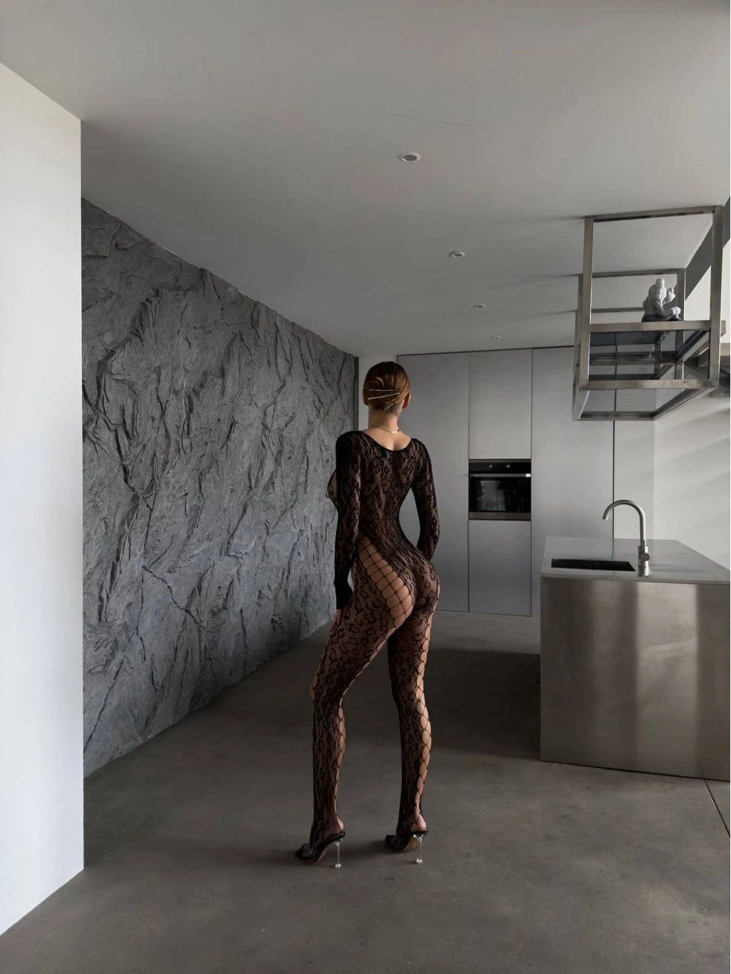 Siyah Jatiyerli Bodysuit Fantezi Vücut Çorabı